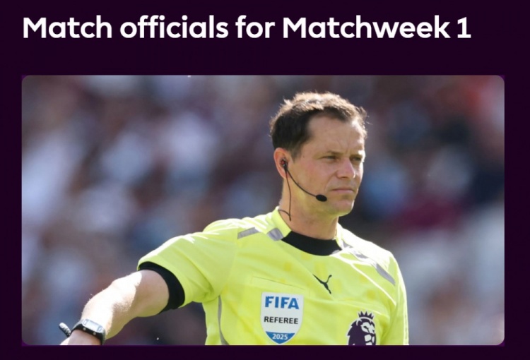 新赛季英超首轮比赛本周末开打,英超官方公布了各场执法裁判。